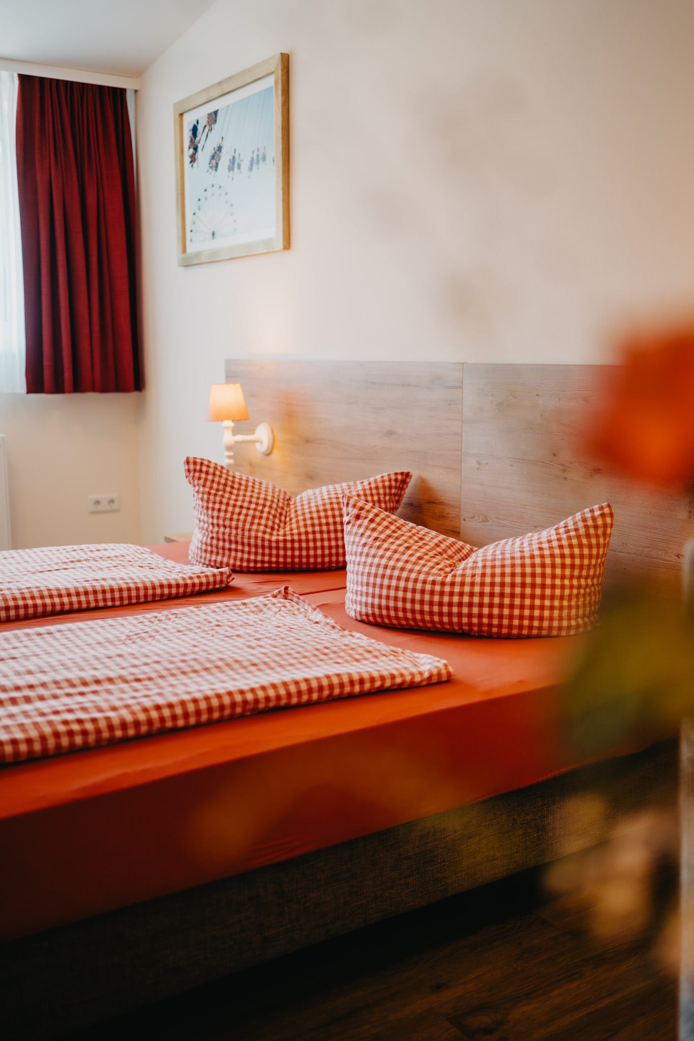 Zum BuchungsassistentNeu renoviert: „Mehr Raum genießen“ auf ca. 30 qm, Nichtraucher, Doppelbett mit neuen Boxspringbetten mit Federkernmatratze, auf Wunsch auch als 3- oder 4-Bettzimmer nutzbar, großer TV, kostenloses und unbeschränktes WLAN, Garderobe, Bad mit Dusche, WC und Waschbecken, Kleiderschrank, 4 Stühlen, Zimmersafe, Schallschutzfenster.